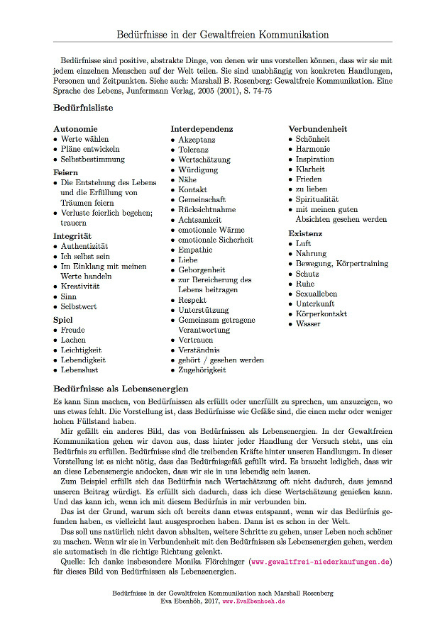 - Siehe auch: Marshall B. Rosenberg: Gewaltfreie Kommunikation. Eine Sprache des Lebens. Junfermann